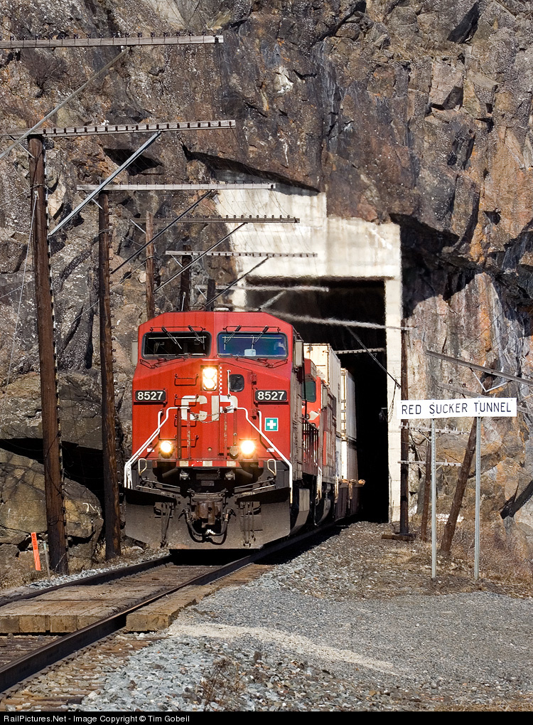CP 8527 & CP 9008 exit Red Sucker Tunnel and begin to slow for a typical springtime 10MPH slow order.