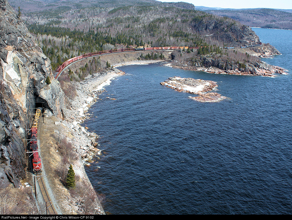CP 9804 pulls 223's freight around Mink Harbour and through the Mink Tunnel.