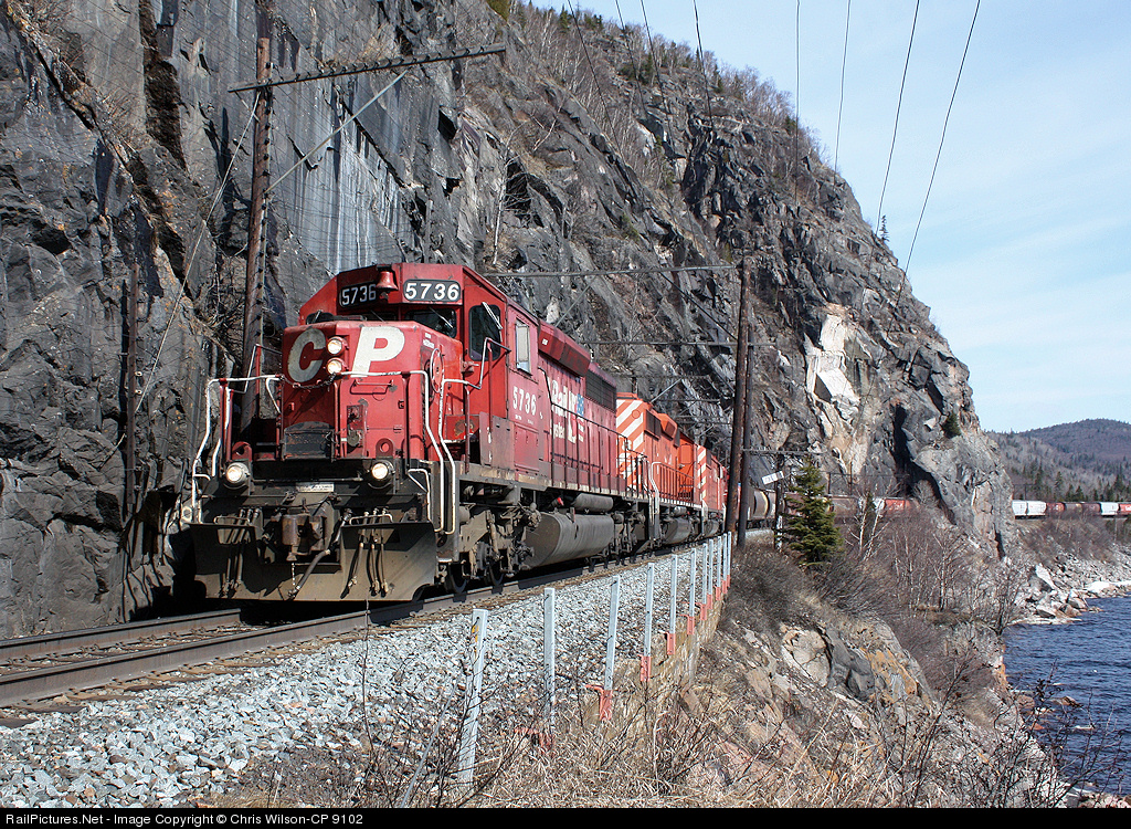 RailPictures.Net Photo: CP 5736 Canadian Pacific Railway GMD SD40-2 at Coldwell, Ontario, Canada by Chris Wilson-CP 9102