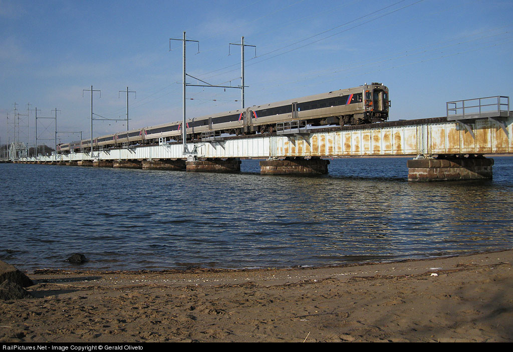 A South Amboy local crosses over the Raritan River on the North Jersey Coast Line.