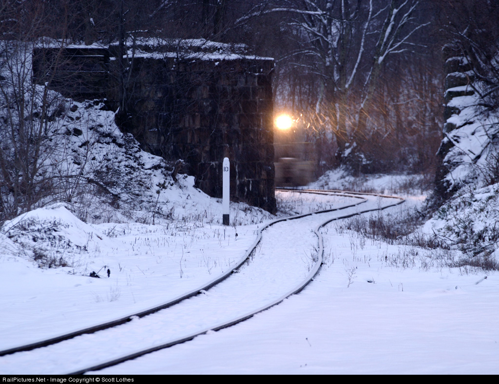 West Virginia Southern SW14 #1442 approaches Mt. Hope, West Virginia, with three loads of pulpwood from the CSX interchange at Thurmond. The train is passing the abutments of an abandoned rail line; both the Chesapeake & Ohio and Virginian railways built extensive branchline networks in the area. R.J. Corman now operates this line.