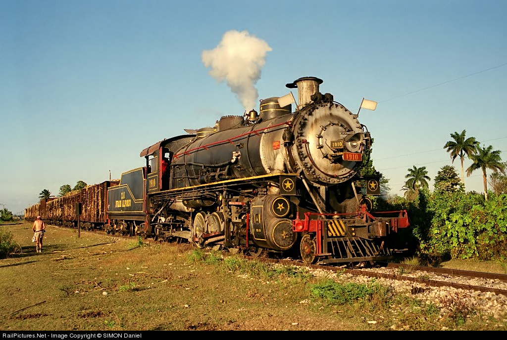 | The mikado number 1910 from the Ifrain Alfonso sugar mill was together with the 1850 from the same central the biggest steam locomotive operating on the Cuban island. It has been built by Alco Brooks in 1925. It was first used on the Cuba RR as number 351. |