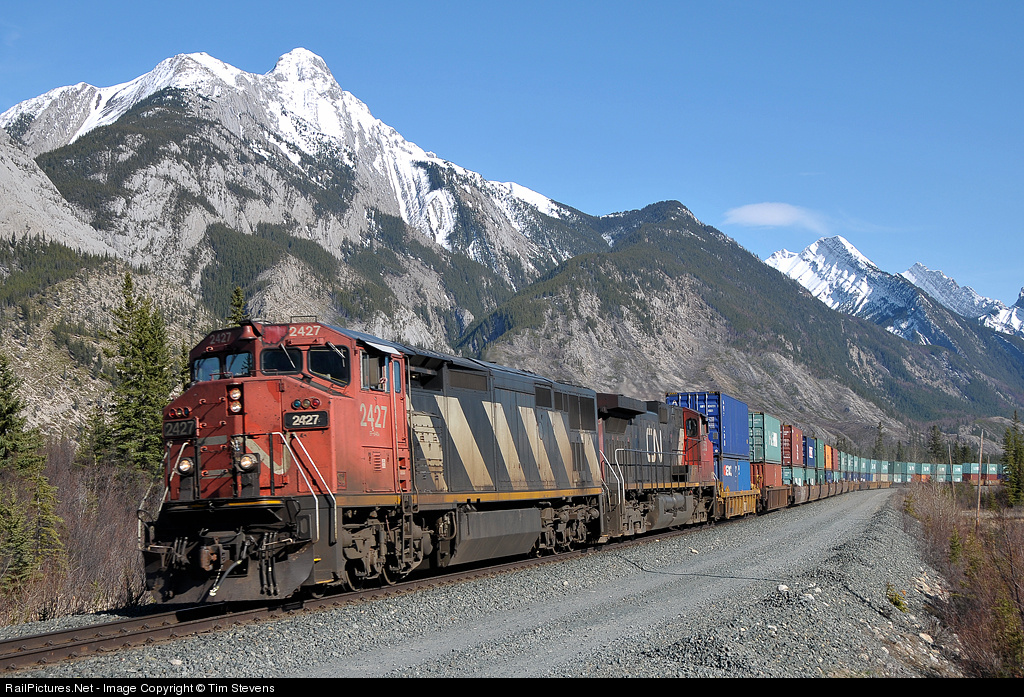 RailPictures.Net Photo: CN 2427 Canadian National Railway GE C40-8M (Dash 8-40CM) at Jasper, Alberta, Canada by Tim Stevens