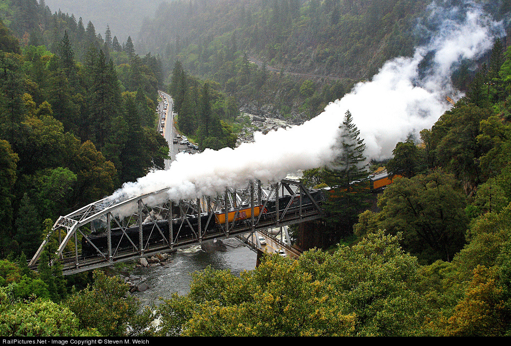 UP 844 crosses both Highway 70 and the Feather River at Tobin, underneath a spectacular plume.