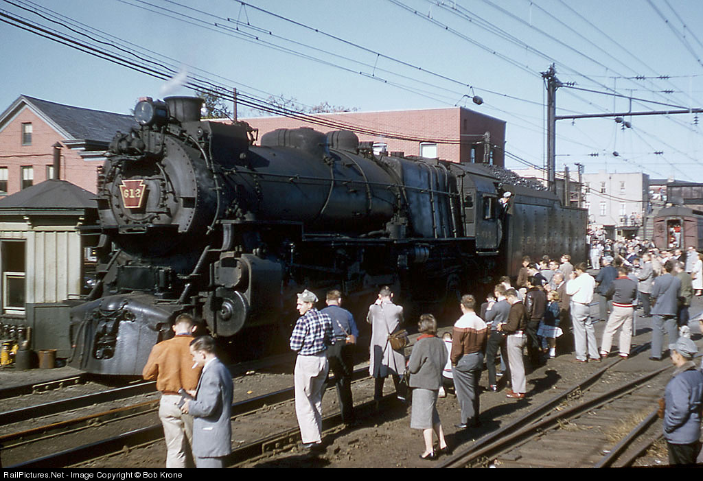 | Many fans are on hand to watch K4sa 612 back down onto the Farewell to Steam special on Sunday, October 20, 1957. The trip out of New York was operated on the same day as another Pennsylvania trip from Baltimore to Northumberland behind L1s 559. |