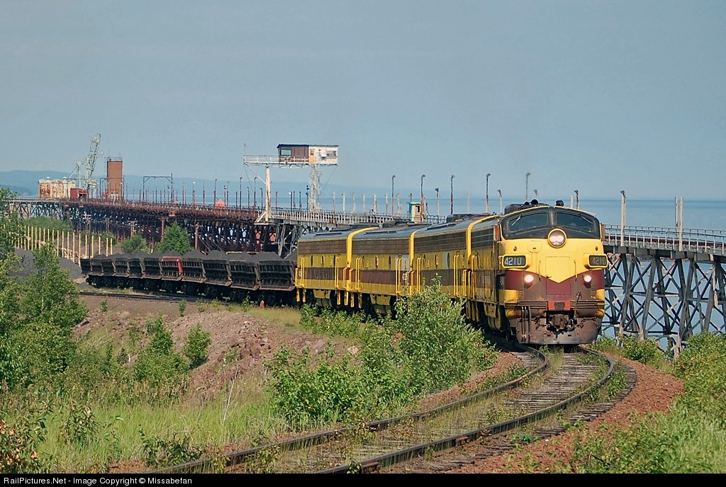 | The mighty Cliffs Erie Railroad working to clean out the former ore dock of the chip and fines left over from past loading operations. How would you have liked to be the guy up in the crow's nest over the dock as a nice "breeze" off Lake Superior was blowing. |