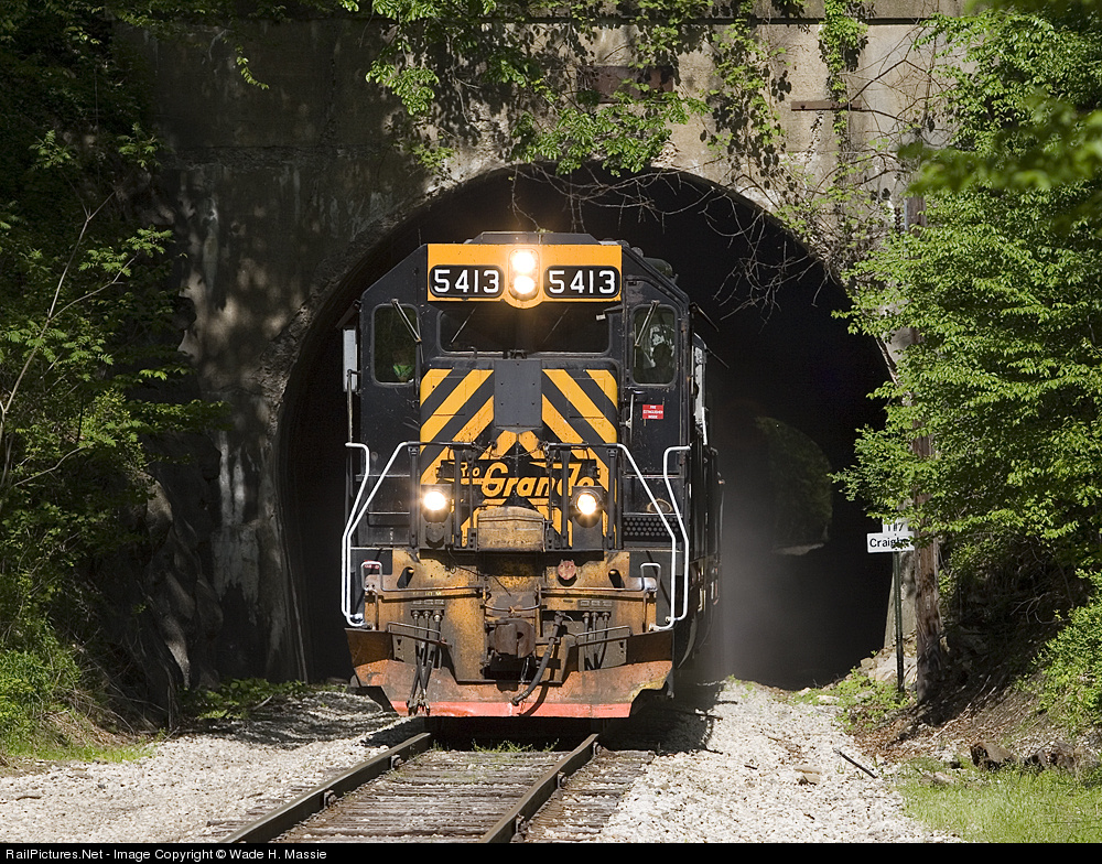 | A tunnel seemed like the best place to photograph a tunnelmotor, so I headed for the W&LE's tunnel alley. 5413 has just popped out of Craighead tunnel and will soon be entering Buxton tunnel, a few hundred feet ahead. |