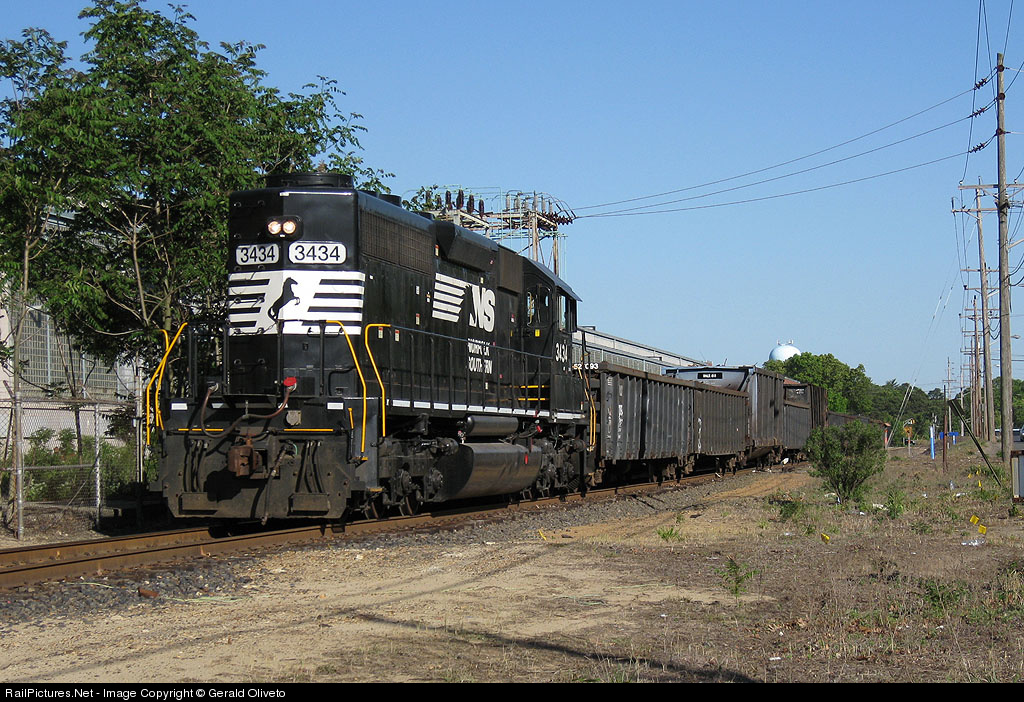 | Running long hood forward, SD40-2 no. 3434 heads up the Gillespie Branch with a train bound for the steel plant in Sayreville. |