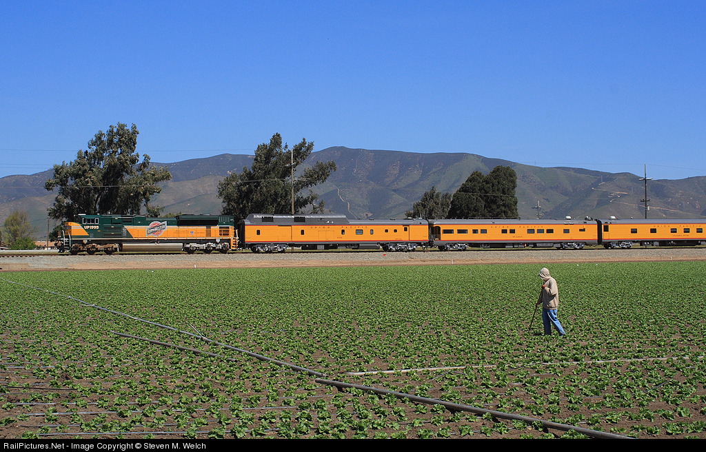For lack of a better term, a "skilled laborer" has diverted his attention from caretaking his lettuce to watch UP1995 scream by making all of 70MPH leading an inspection special.