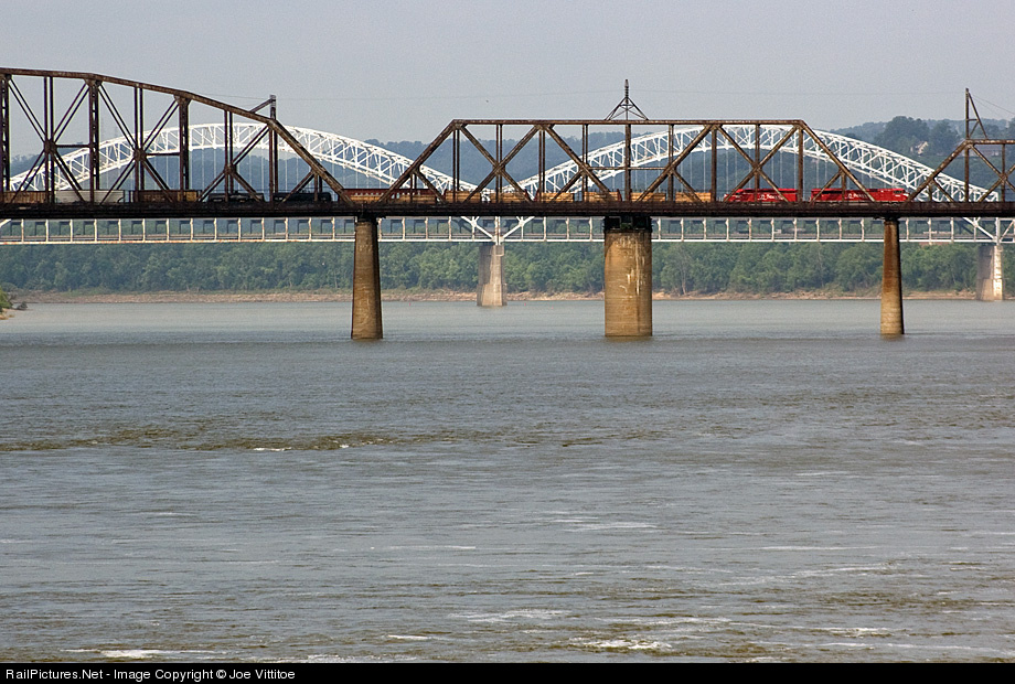 INRD SD9043MAC 9004 leads Z490 north across the Ohio River from Louisville as it begins its trip up the old Monon.