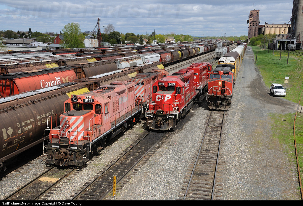 The yard is plugged with grain empties, while engines accompany each other, side by side in Wesfort. Each masters in their own time. CP SD40M-2 5499 sits coupled to sister 5420. The 5400's which remain now call Thunder Bay home, and move back and forth all day switching endless amounts of grain cars. To their left a disgustingly faded pair of GP9u's (1571-1560) idle awaiting the midnight shift, while on the right is a leased CN C44-9W doing work for one it's competitors.