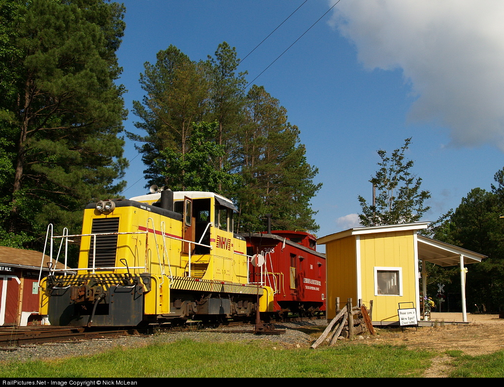 | 1943-built #399 pulls out of the former Norfolk Southern (old NS) yard in Bonsal with a freshly painted Aberdeen & Rockfish caboose past the egg shack, so-called because a local farmer sells eggs via this unmanned little hut to locals via - surprisingly - the honor system. |