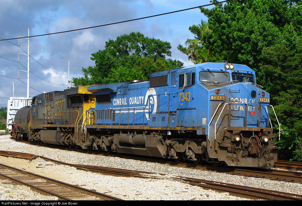With an older scheme in the lead, a CSX powered mixed freight rounds the curve at East Bridge Tower on NOPB trackage. The NOPB is in the midst of a slew of capital improvements on the heels of it's 100 year anniversary, as evidenced by the welded rail in the foreground, soon to be installed.