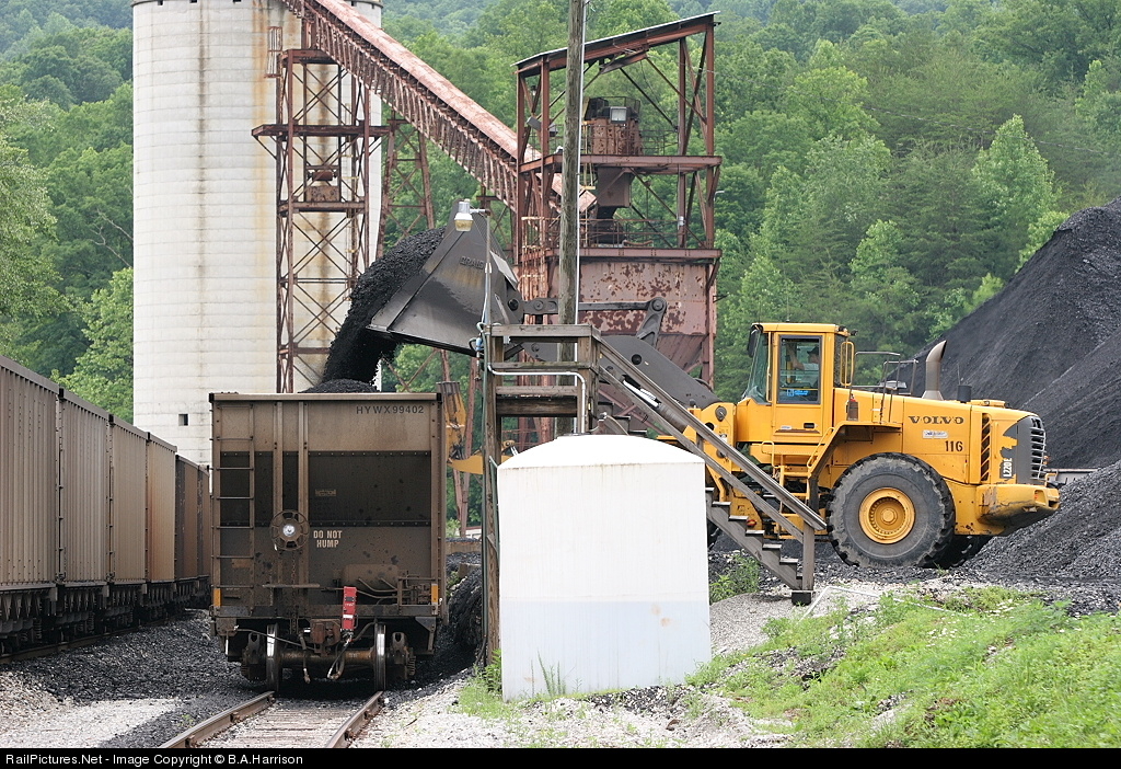 Loading with a wheel loader, three at a time, generally takes six hours. The unit train is cut into two halves with three motors for each half.