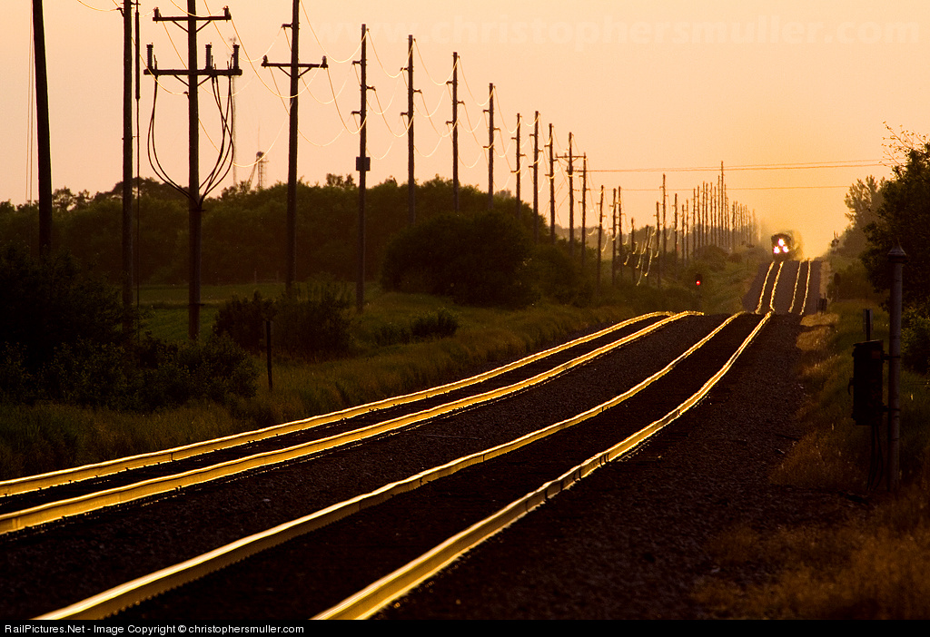 Like Linkin Park's, "Minutes to Midnight..." may be a little early, but minutes to sunset for sure. Three miles down the line, the BNSF 5313 is getting ready to make a dip in the Wing River Sag on the Staples Sub Mainline between Wadena and Verndale. More info at OutstateMinnesotaRail.