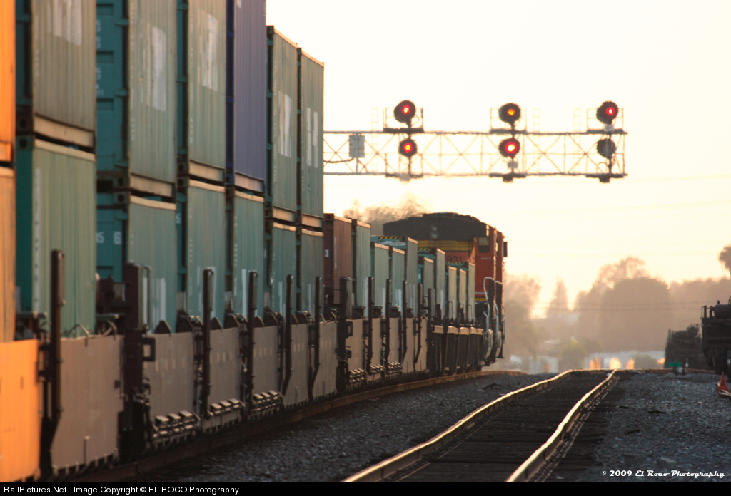 At about dusk, a Westbound stack appears to drive off the end of the Earth as it approaches the intermediates located at Highland Avenue, in Fullerton. While the view in that direction from the platform appears to be almost flat to the naked eye, with the use of a 400mm lens, it is clearly downhill to C.P. Basta.