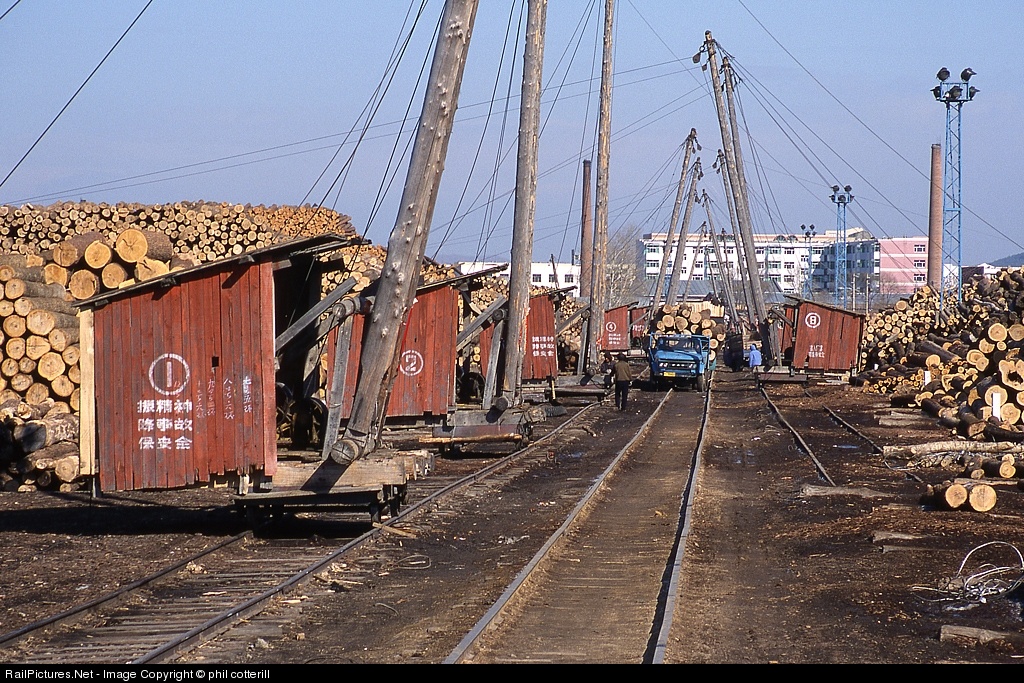 several rail mounted cranes are used at Weihe to move logs around the yards.