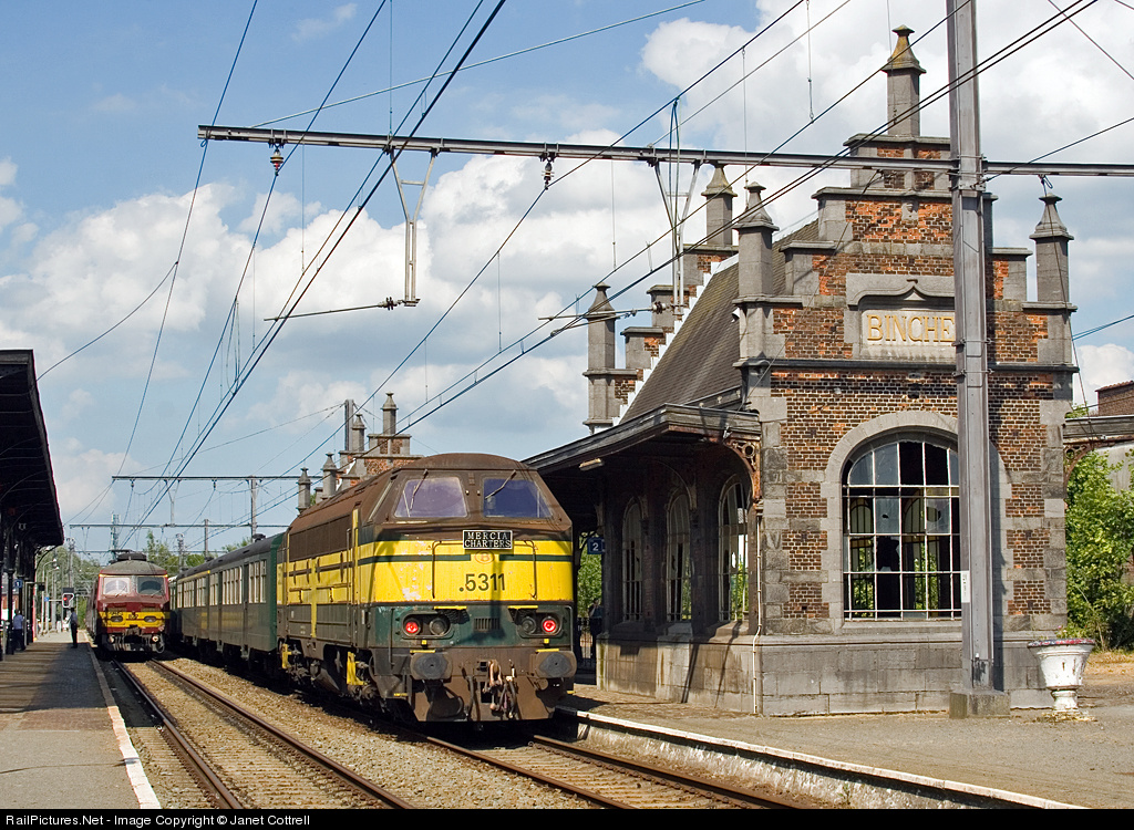 | This is probably one of the last runs of AFB/GM class 53 as owner TUC has now replaced then with other motive power. 5311 stands next to the ornate waiting room / subway entrance at Binche with Mercia Charters "The Resurrection" charter. |