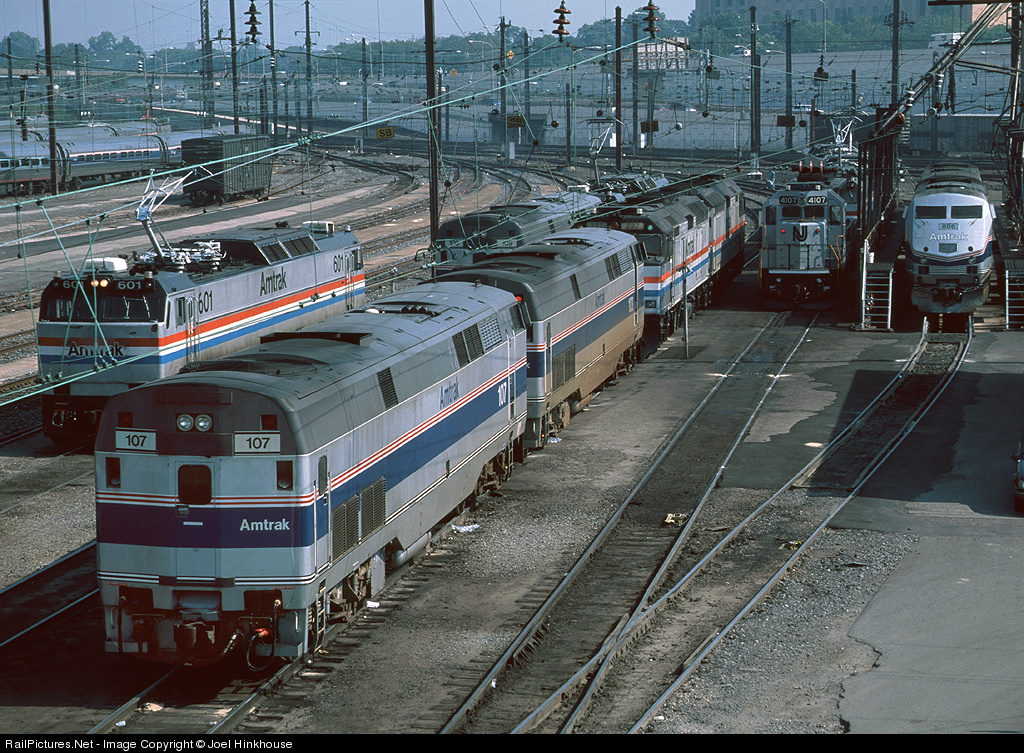 | Quite a collection at the Amtrak service facility in Philadelphia, including E60 #601, which was retired not long after this photo was taken. |