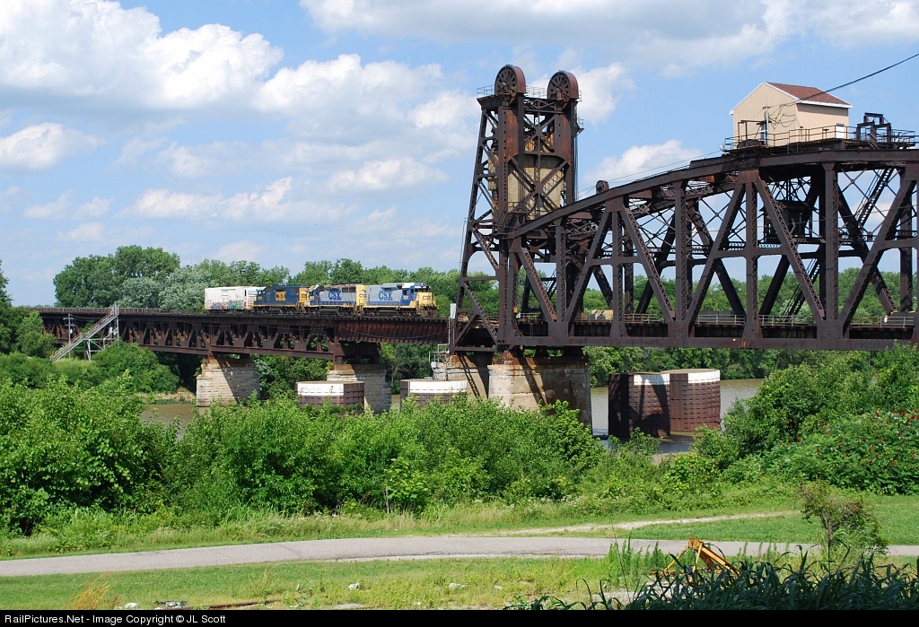 CSX Y129 is about to enter the lift span on the Louisville & Indiana Railroad (former PRR) brigde over the Ohio River as it heads south from Clarksville, IN into Louisville. Clagg Tower, still in service today, is just south of the lift span and controls the bridge and trackage around it.