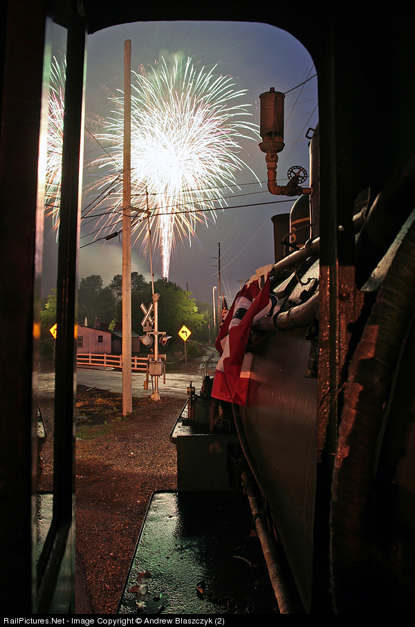 Happy 4th of July! Fireworks celebrating the country's independence explode in the rainy skies over Hockessin, DE as seen from the fireman's seat of #98.
