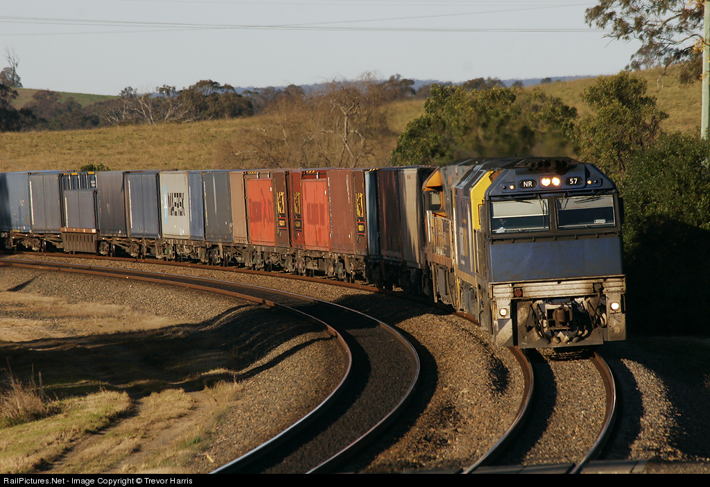 NR57 is the only NR left in Seatrain scheme since NR56 was recently repainted into new PN scheme leads a Melbourne-Brisbane freight through Maldon with AN5 and NR91.