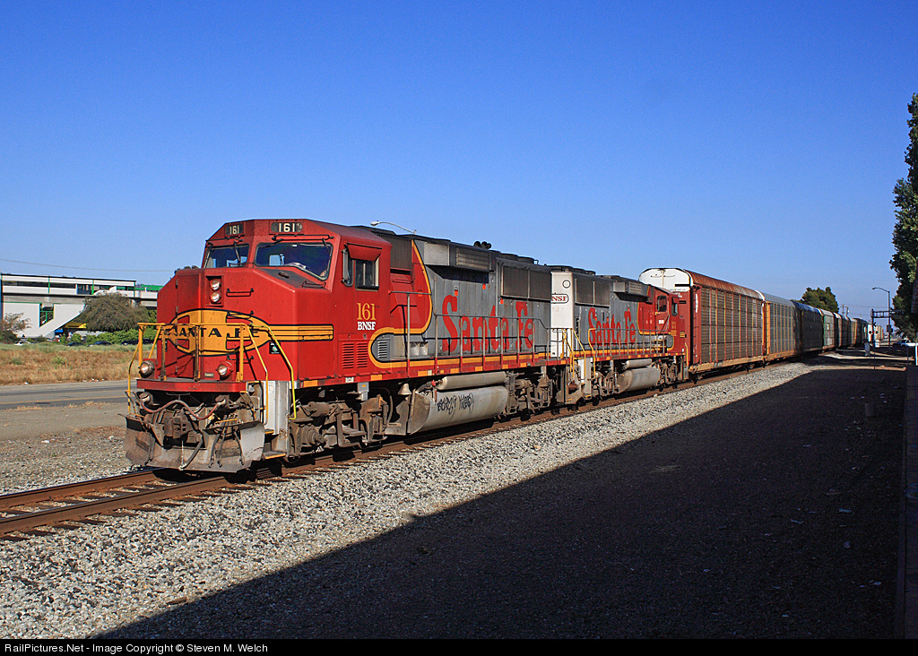 | WOW! A matched pair of Santa Fe Warbonnet GP60M's take me back to 1995, while they lead the Northbound Warm Springs Local through San Leandro on another California Summer afternoon. |