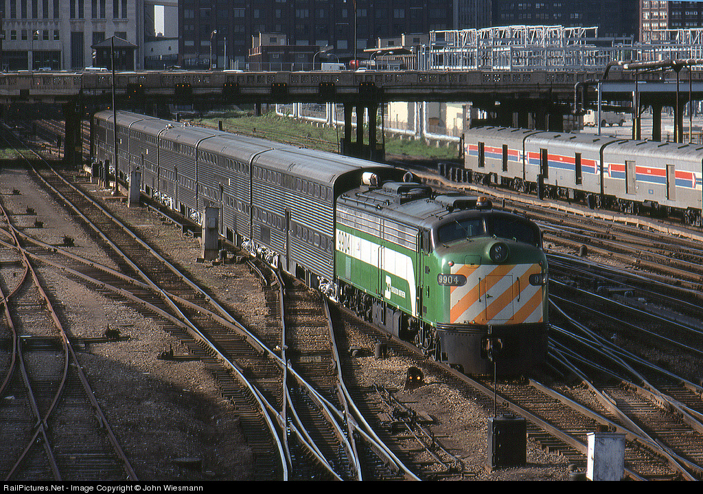 RailPictures.Net Photo: BN 9904 Burlington Northern Railroad EMD E8(A) at Chicago, Illinois by John Wiesmann