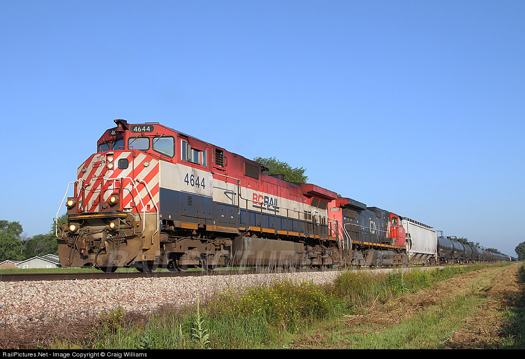 An ethanol train off the Iowa Northern at Waterloo, IA, is waiting for a crew off X337 to arrive in Waterloo before heading back east for Chicago, IL. This train originated on the IANR at Butler, near Shell Rock, IA. BC Rail units haven't been real common in Iowa but are becoming more numerous.