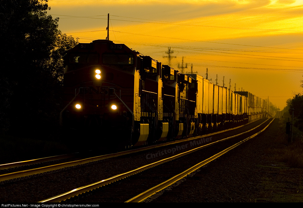 | At the close of OutstateMinnesotaRail's railfan gathering in Verndale, the final train to be shot in daylight would be this stack train. While the engines are coasting down grade, the end of the train is still on their way out of the Wing River Sag. |