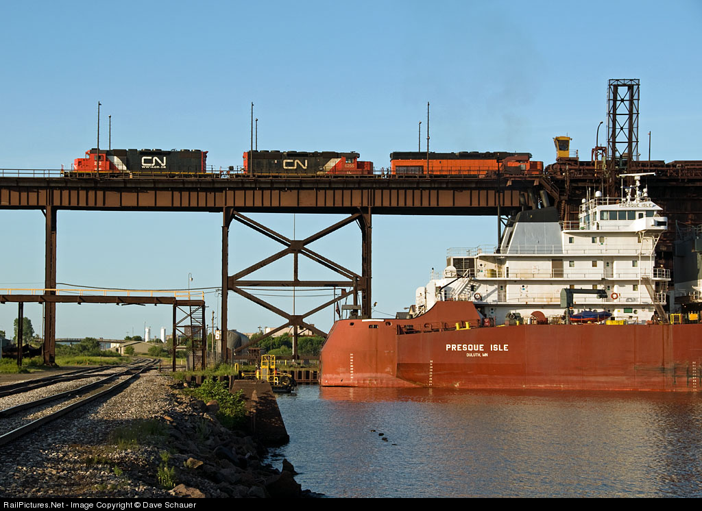 Afternoon Proctor Roadswitch dumps ore cars on Dock 6 while the Presque Isle unloads limestone at its home port of Duluth.