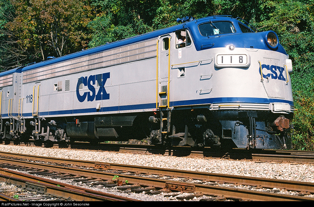 The power for the 1989 train was CSX FP7 #118 and CSX F7B #119. CSX #118 started life in 1952 as Clinchfield #200 and is currently West Virginia Central (Western Maryland) #67.