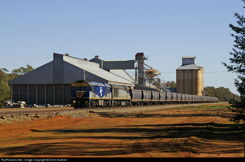 | Loading at the unlikely named location of Moombooldool in the Riverina region of NSW, hired CFCLA GL110 and EL55 stand at the head of El Zorro operated 3994 grain for the Australian Wheat Board (AWB) on Friday 24 July 2009, the loading bound for Port Kembla |