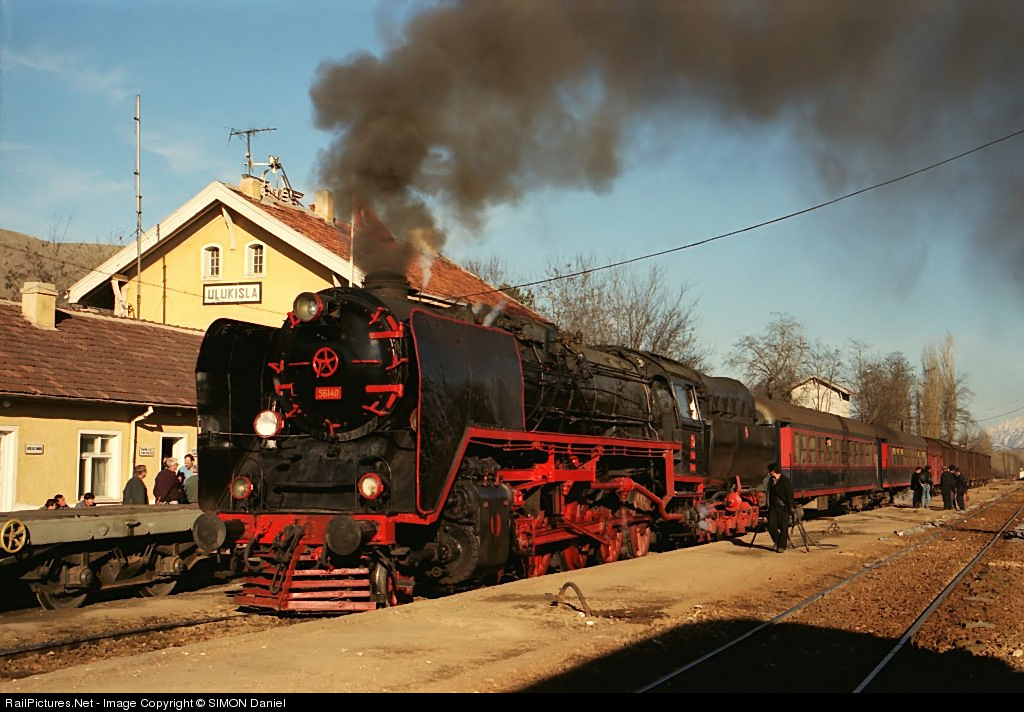 | TCDD steam locomotive 56-140 is ready to leave Ulukisla station with a mixed train to Kayseri. This engine has been built by CKD in Czechoslovakia in 1949. |