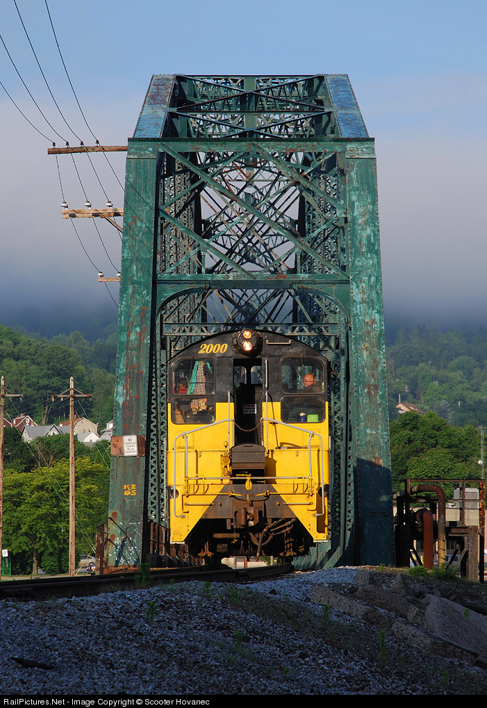 Having delivered a couple gondolas to Johnstown Wire Technologies across the river, the Black Lick's 2000 recrosses the Conemaugh River via the Ten Acre bridge.