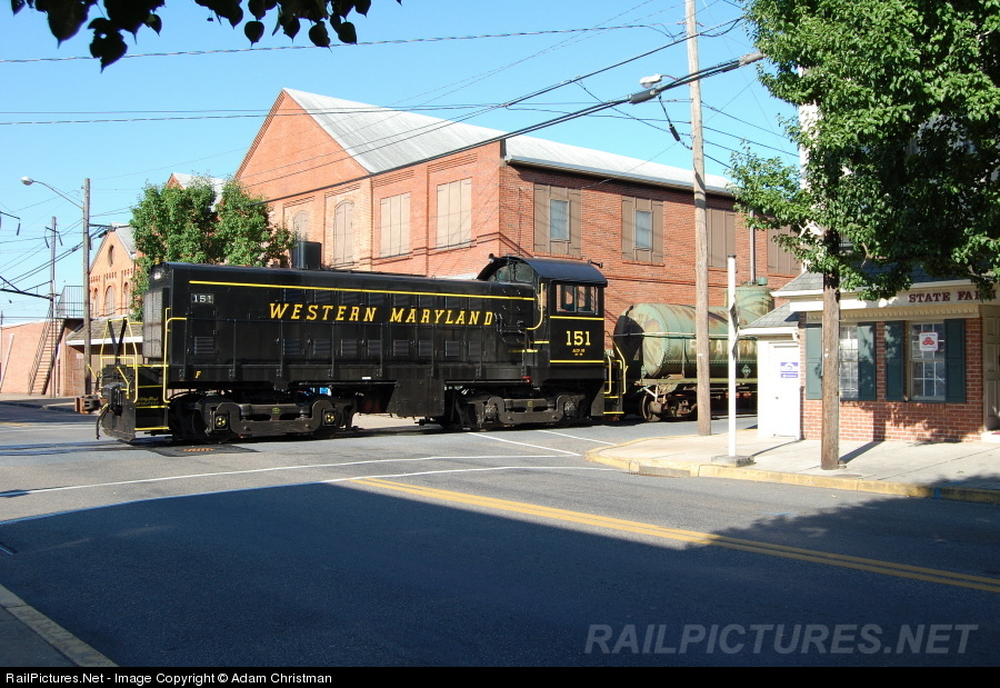 | The first ever photo charter featuring the Western Maryland S6, reciently repainted into proper speed-lettering livery. The train is seen here street running through the center of Middletown at about 9:30AM. Talk about a wake-up call! |