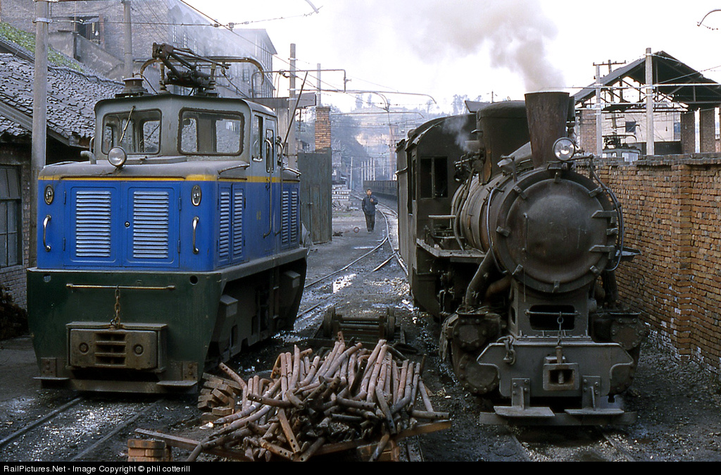 Steam and electric locos share the loco shed at Shixi which is the main servicing facility for the Jiayang coal railway.