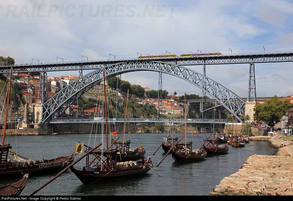 Oporto's metro crossing D.Luis bridge over the Douro river.