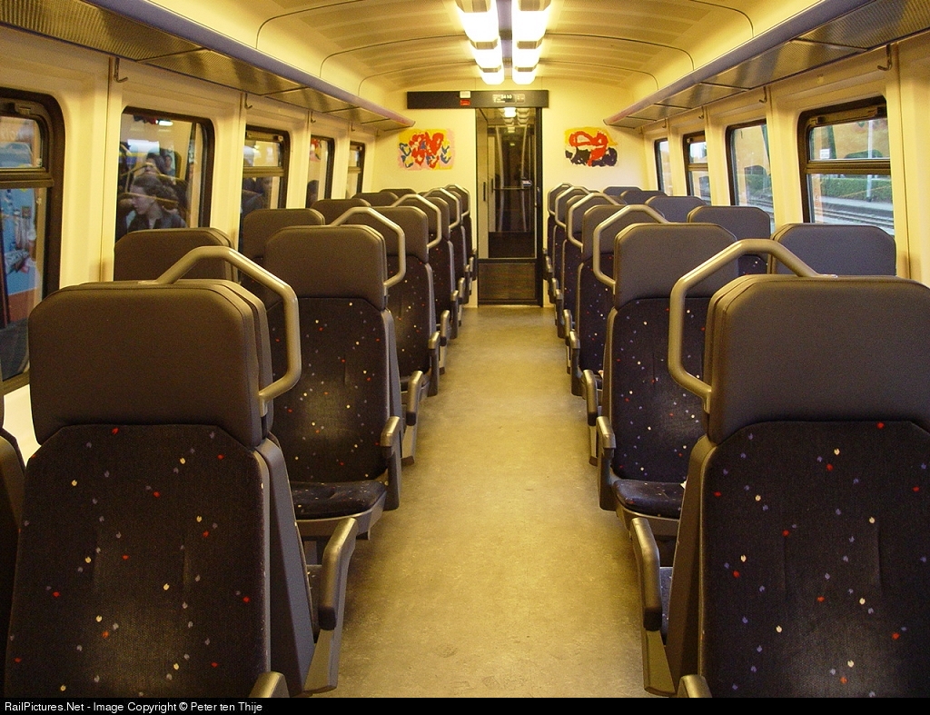 The interior of the DM'90. This train is extremely comfortable, best local train I have been in yet. However, it does not have airconditioning. This is a mayor problem since the few windows that open, only open slightly. This train can be a real cooker!