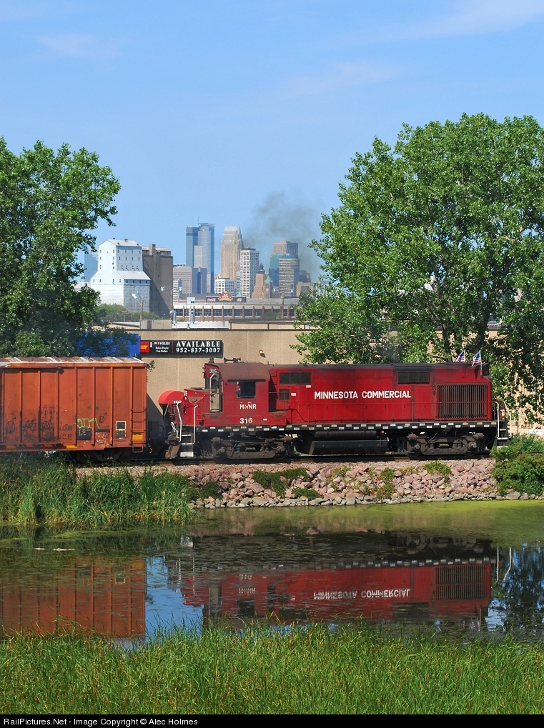 One of two RS-27's left in the whole country, MNNR 316 throttles up past the skyline of Minneapolis. Overlooking the subject matter is the new Minnesota Gophers football stadium, visible just below the skyline. A nice reflection, skyline, and an RS-27, yup, I think I'll take it!