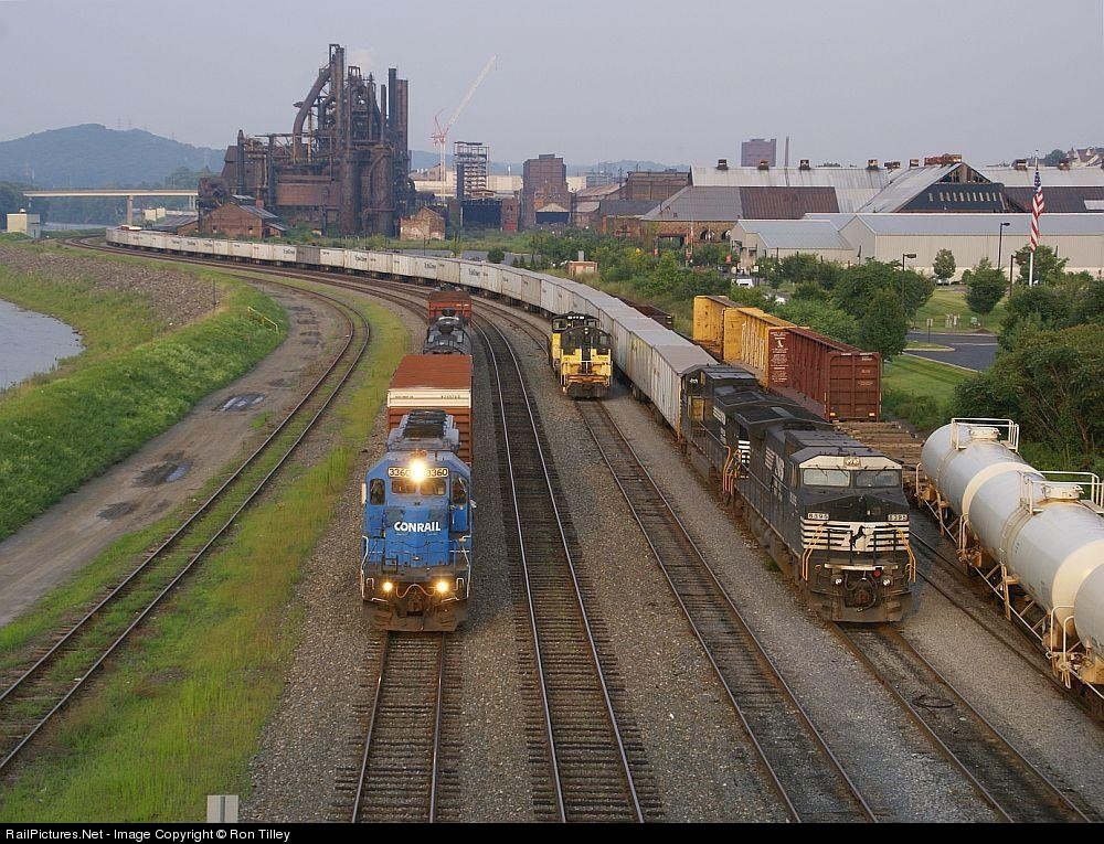While many musicians preform at musikfest acrossed the river, Norfolk Southern, and LVRM put on a show of their own featuring the sounds of EMD and GE. Trains from left to right are NS local H76, LVRM switchers, Roadrailer 261, and NS local HA13. Of note is the enormous size of todays roadrailer which was brought out by the two little LVRM switchers earlier.
