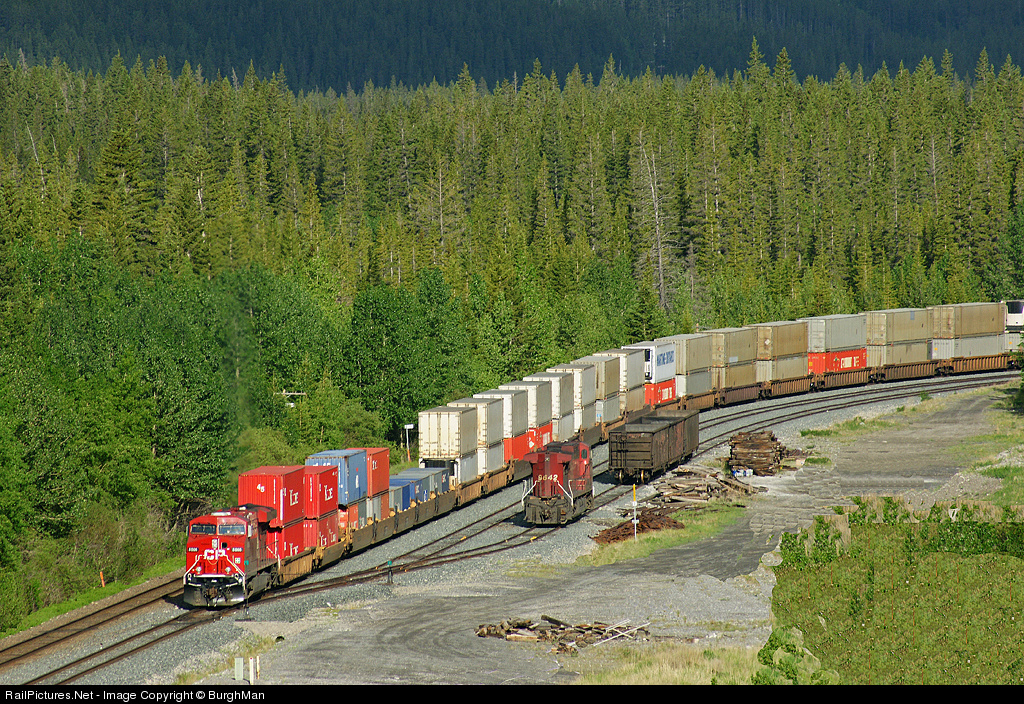 CP 8866 continues east with a stack train after dropping trailing unit CP 9642 off on the siding.
