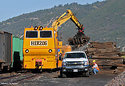 Herzog Railway Services MPM 173 has been assigned to work on Union Pacific's Provo Subdivision during the summer months of 2009. On the morning of August 21st, Maintentance of Way crews are stacking up bad ordered ties along a substantial pile of oldies in the former D&RGW yard at Soldier Summit.