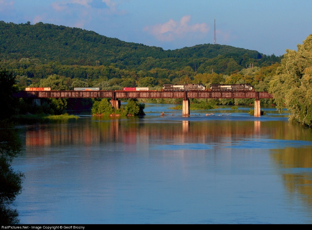NS 234 crosses the Scioto River in the late evening as it heads east on the NS Columbus District.