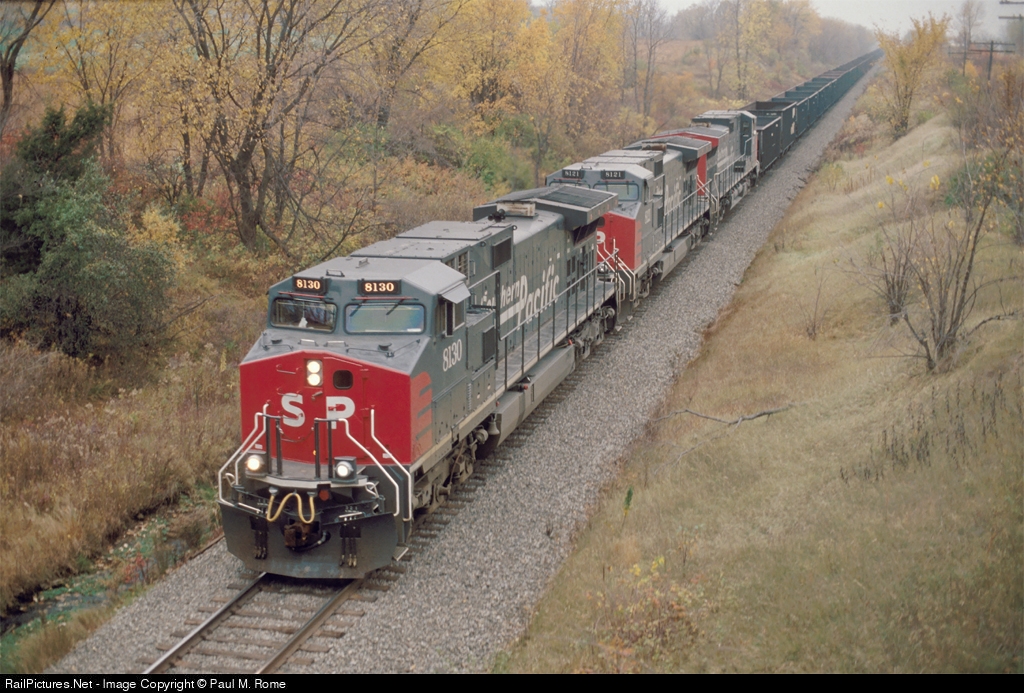 SP 8130 is Southbound on the Wisconsin Central leading two sister units with iron ore destined for Geneva Steel.