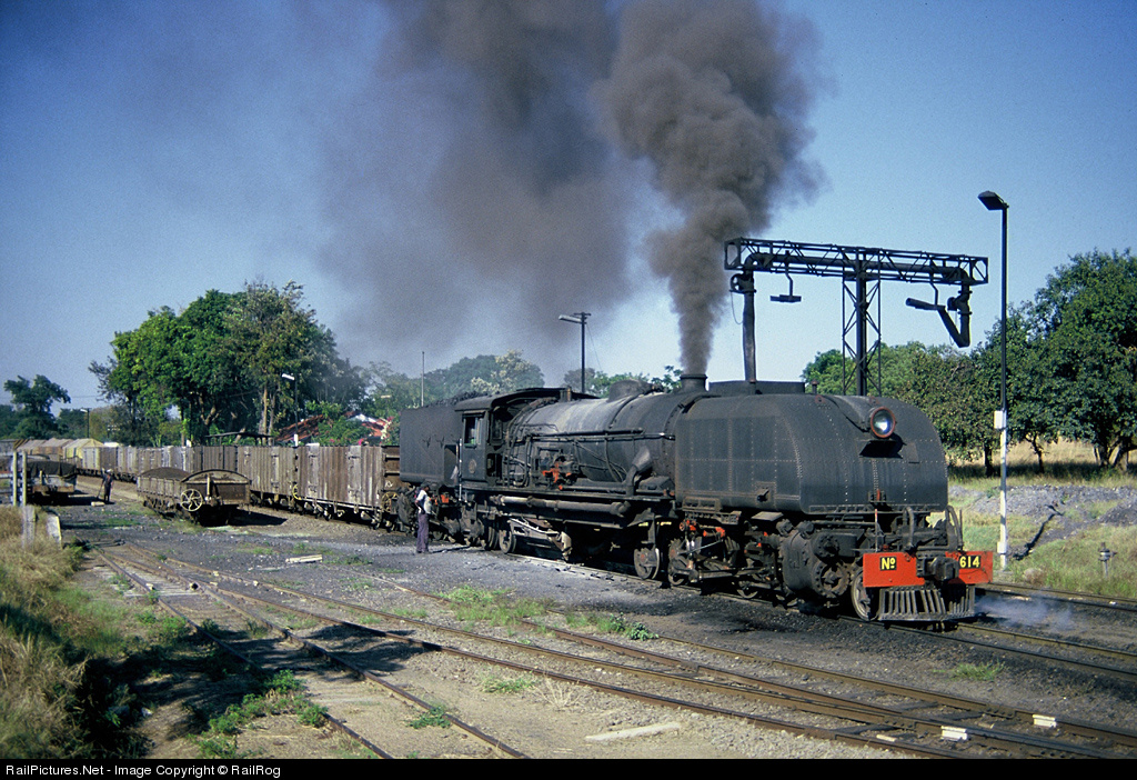 | My first visit to Zimbabwe! NRZ 16A No. 614 has had its fire cleaned and been watered at Mbalabala on the West Nicholson branch. I was to ride footplate on this engine for the next 35Km – perfectly legal in Zimbabwe, where footplate permits were (and still are) freely available to railfans. |