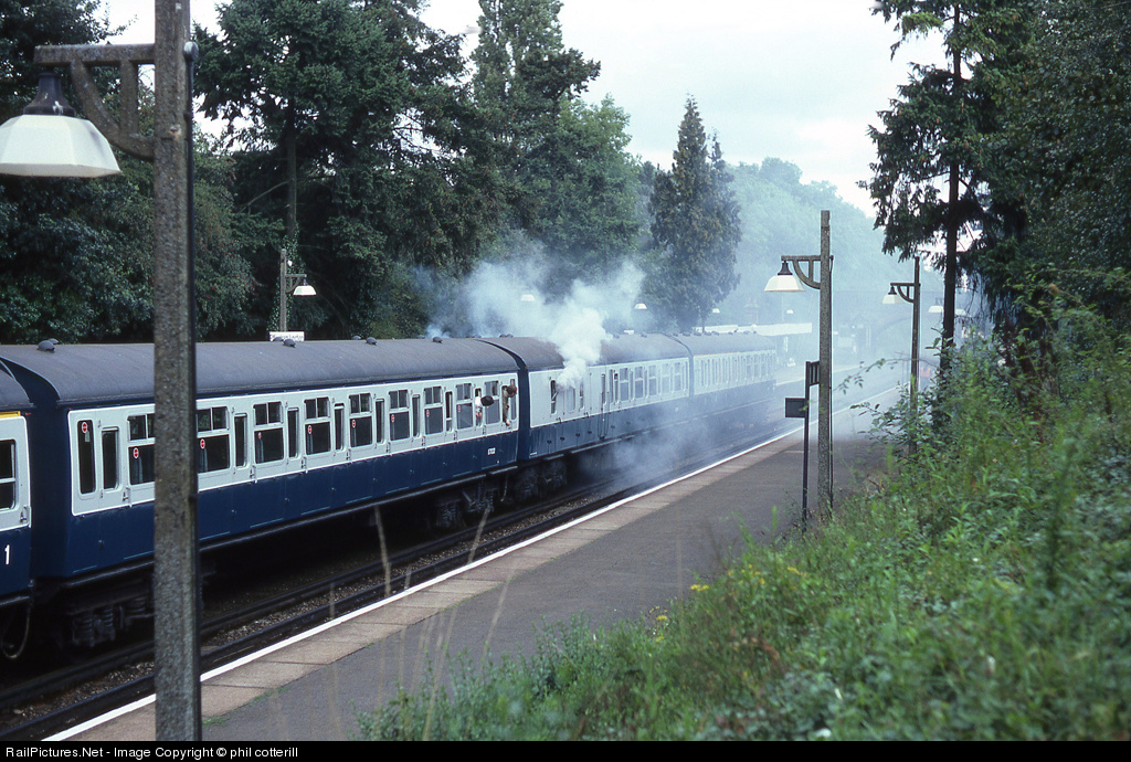 Ray Davies, of The Kinks, made a film musical called "Return to Waterloo" following the life of a train commuter. He hired 4VEP 7851 for a couple of weeks, and strange things were seen being filmed at various locations on the Guildford via Effingham route. Here smoke billows out of the train at Effingham Junction. i don`t believe this was used in the finished film.