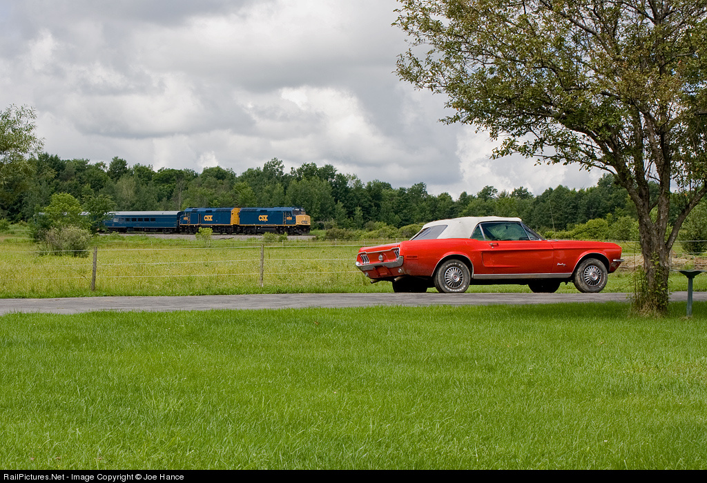CSX P91908, the OCS, passes an old Mustang on their way through Antwerp.