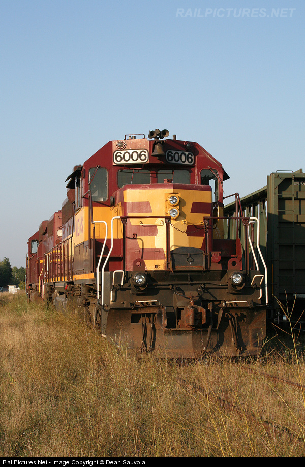 On the siding are WGN's two newest locomotives along with their SW1. Delivered today and purchased from Canadian National are ex-Wisconsin Central (nee-Algoma Central) SD40-2 #6006 and ex-Duluth Missabe & Iron Range SD38 #200. Both units had been retired and drained of fuel for a time prior to sale. WGN crews were planning to fuel the 6006 in an attempt to fire her up for eventual use shuffling storage cars.