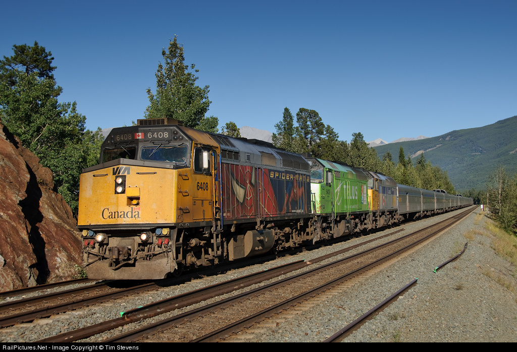 RailPictures.Net Photo: VIA 6408 VIA Rail EMD F40PH-2 at Jasper, Alberta, Canada by Tim Stevens